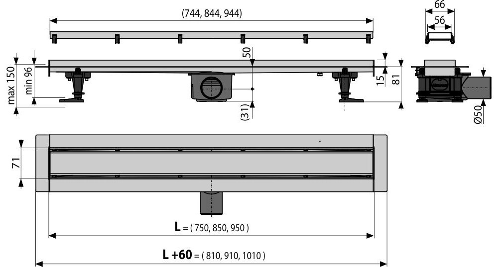 | Druh kúpeľňového príslušenstva: | Sprchové žľaby |