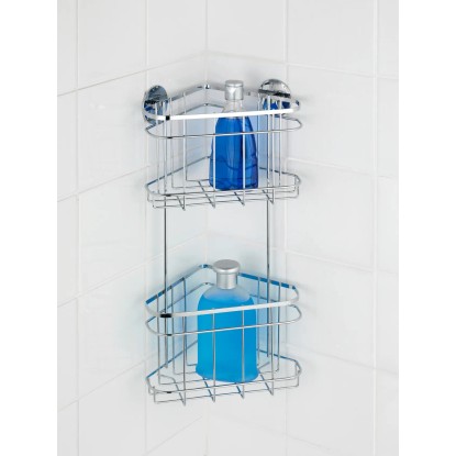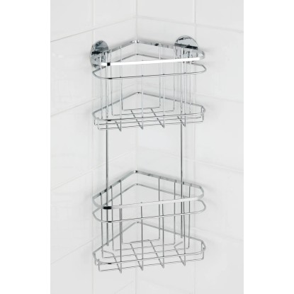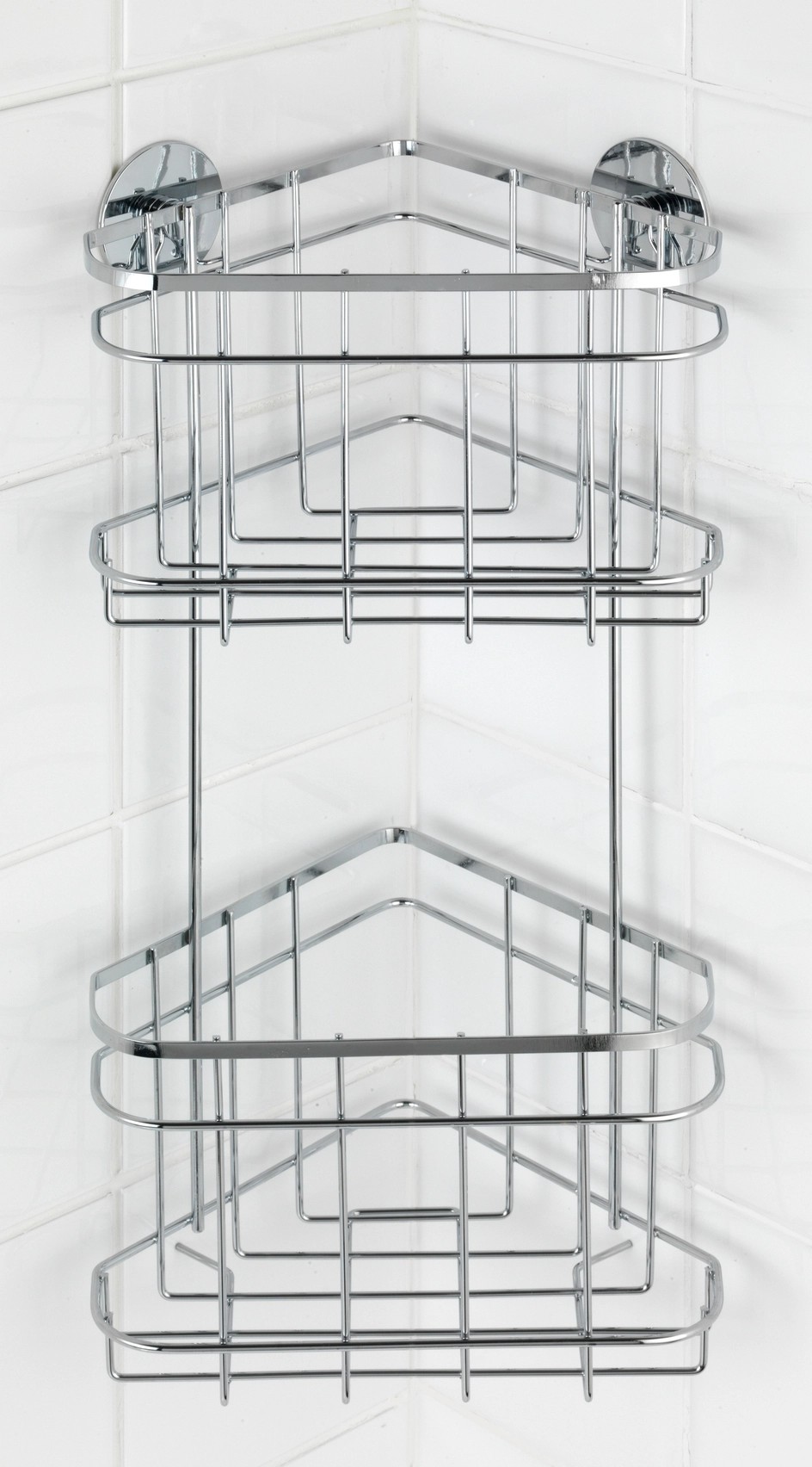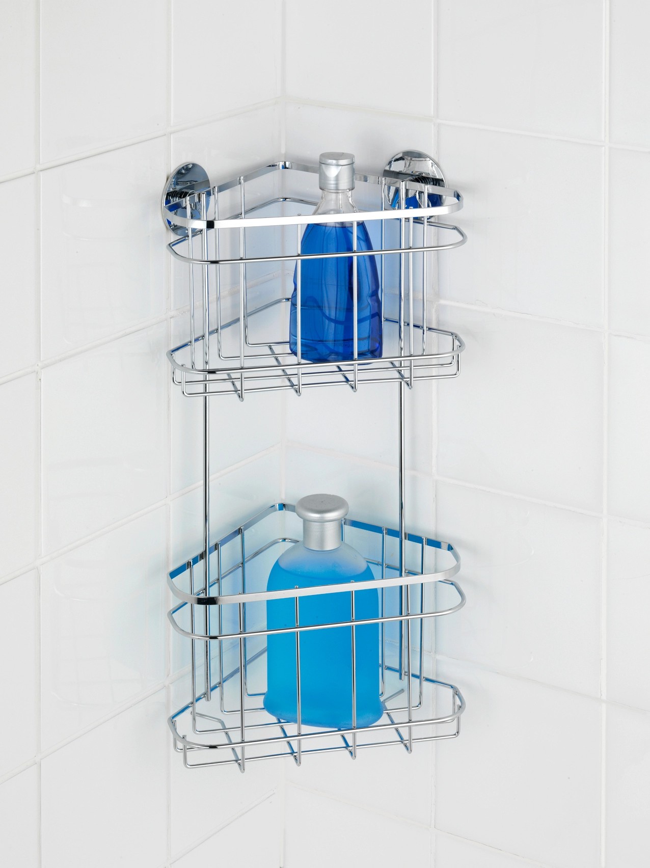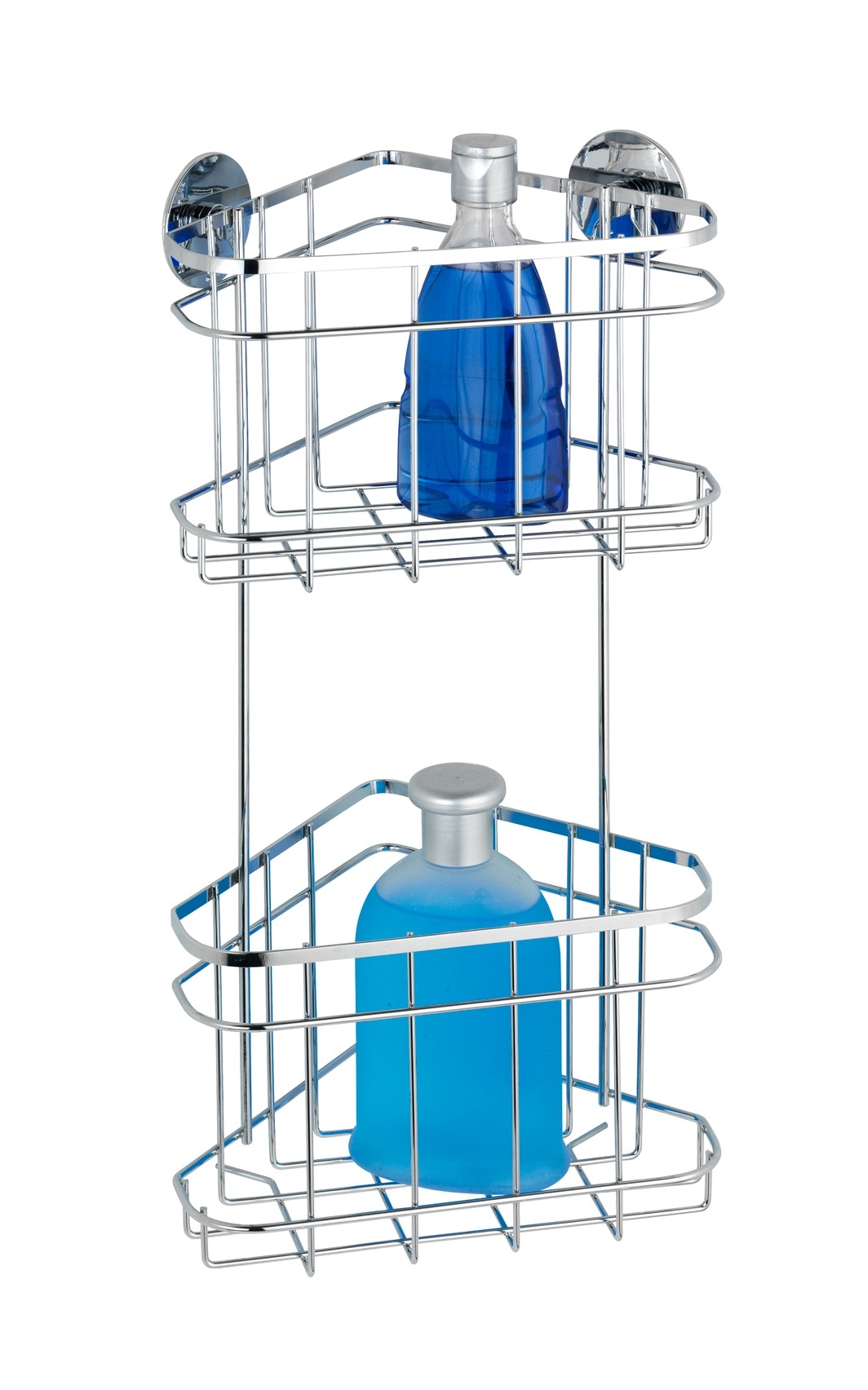 Wenko rohový regál Turbo-Loc s 2 košmi je vyrobený z vysokokvalitnej ušľachtilej ocele a jeho vysoké koše ponúkajú kúpeľňovým doplnkom bezpečné uloženie.