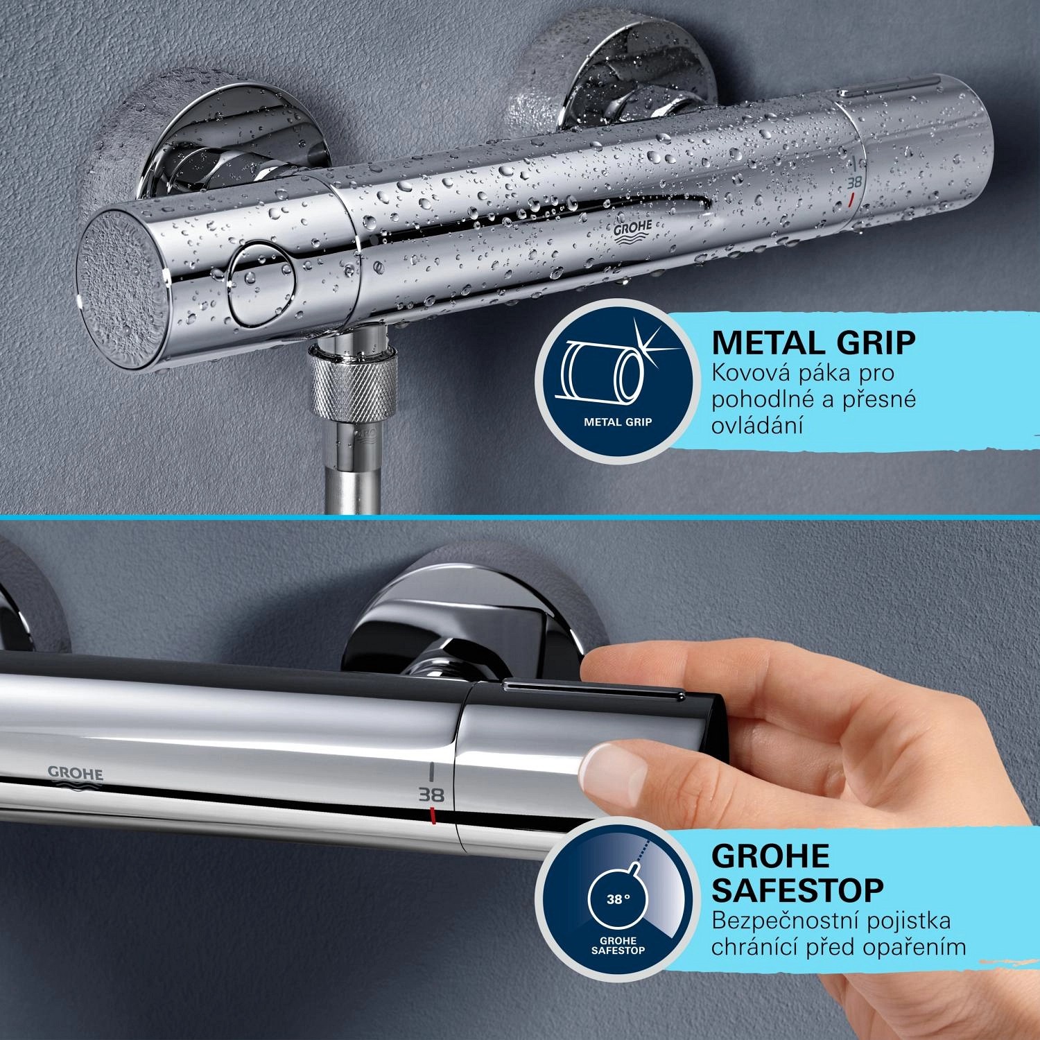 - Tlačidlová poistka GROHE SafeStop na 38 °C
