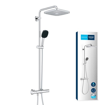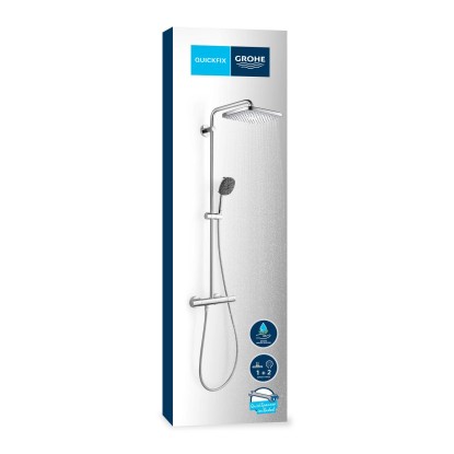 Tento termostatický sprchový systém GROHE VITALIO COMFORT 250 je zrejmým vylepšením z hľadiska štýlu, funkčnosti a výkonu a poskytne vám roky bezproblémového používania. Tento exponovaný systém pre montáž na stenu sa skladá z 250 mm hlavovej sprchy, 110 mm ručnej sprchy, termostatu, sprchovej lišty s 390 mm otočným sprchovým ramenom a posuvným prvkom na nastavenie ručnej sprchy a 1750 mm hadice s konštrukciou TwistStop. Horný držiak tyče sa dá ľahko prispôsobiť existujúcim vŕtaným otvorom, takže je ideálny pre modernizáciu.