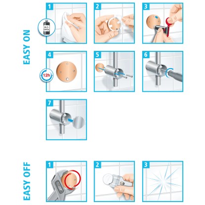 Vŕtanie nie je nutné, takže sa steny a obklady nepoškodia. Lepidlo zaschne za 12 hodín. Stĺp je možné kedykoľvek rýchlo a bez stopy odstrániť. S novým adaptérom BK30-2 ho možno ľahko pripevniť na inom mieste.