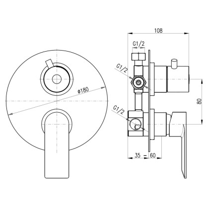 Vodovodná batéria vaňová/sprchová 3-cestná vstavaná s prepínačom.