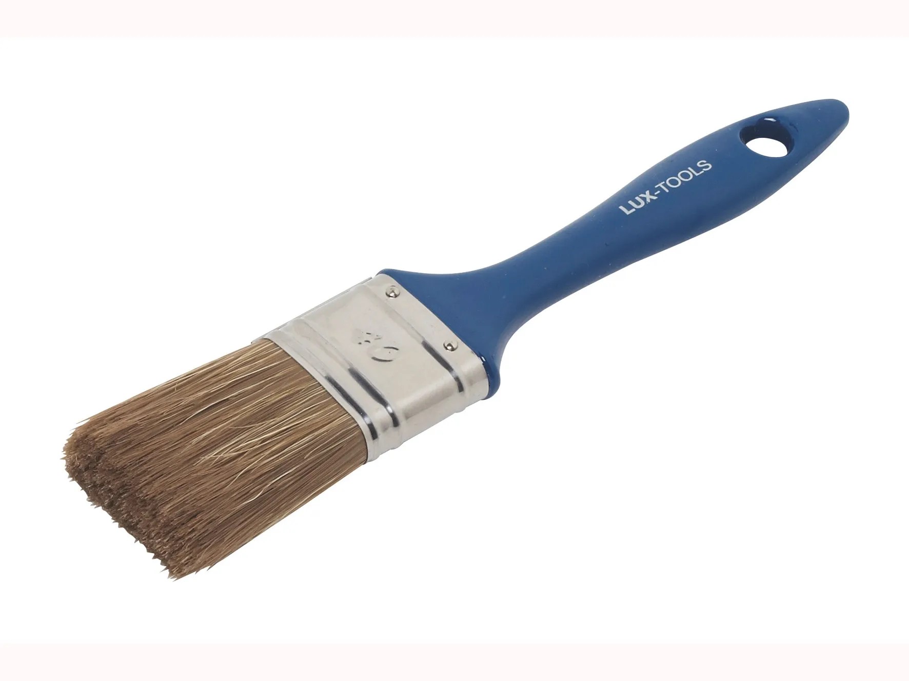LUX-TOOLS plochý štetec na lazúry zaisťuje veľmi pekný výsledok natierania a ideálne sa hodí pre lazúry. Štetec má šírku 40 mm, hnedé syntetické a biele čínske štetiny, nerezovú objímku a praktickú modrú plastovú rukoväť s otvorom k zaveseniu.