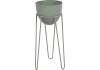 Tento zelený stojan na rastliny pozostáva z okrúhleho ozdobného kvetináča, ktorý sa nachádza v kovovom stojane. Pomocou tohto kovového stojana vrátane ozdobného kvetináča môžete pôsobivo prezentovať všetky druhy kvetov, rastlín, byliniek atď.