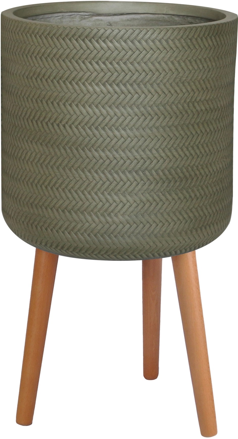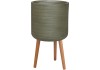 Obal na kvetináč okrúhly vzor vrkoča, zelený, Fibre-Clay, drev. nohy, pr. 24 cm