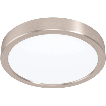 Eglo LED prisadené stropné svietidlo FUEVA 5 (oceľ/matný nikel, plast/biela) s priemerom 210 mm a výškou 28 mm. Farba svetla neutrálna biela 4000 K.