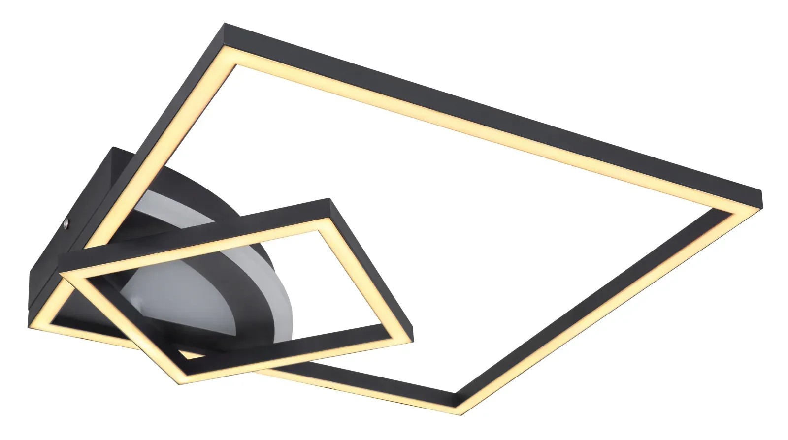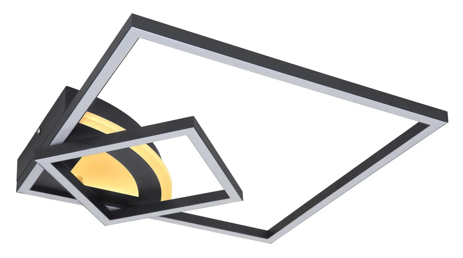 Stropné LED svietidlo Globo Tiny o rozmere (d x š x v) 425 x 425 x 70 mm. Vyrobené z kovu a akrylu. 3 úrovne nastavenia svetla pomocou spínača: vonkajšie, vnútorné a oboje.