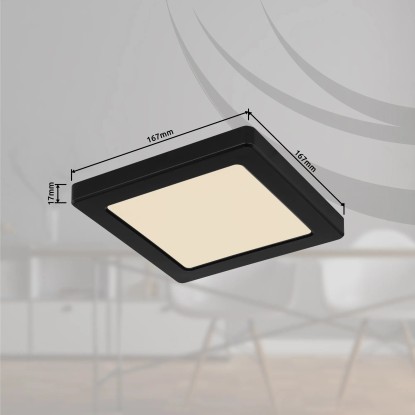 GLOBO LED svietidlo LASSE čierna 12W 1050lm 3000/4000/6500K 167 x 167 x 17 mm