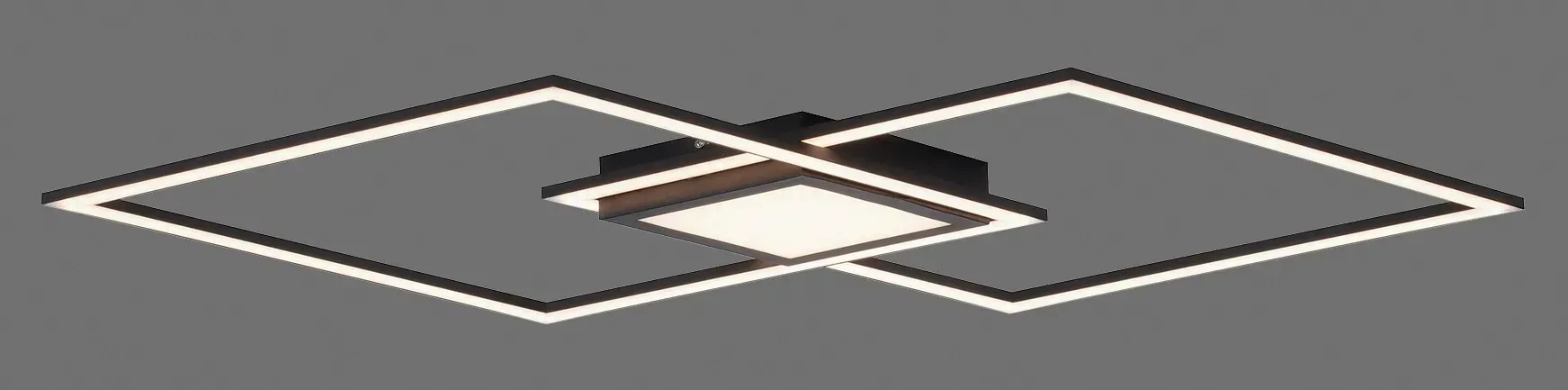Stropné LED svietidlo Just Light. Asmin v hranatom tvare zaujme svojou funkčnosťou a osvedčuje sa ako skutočne univerzálne svietidlo. Jasné tvary robia svietidlo decentným svetelným prvkom, ktorý je možné kombinovať so zariadením v mnohých štýloch. Dva čierne rámy majú tvar širokého paralelogramu a sú vybavené pevne zabudovanými LED profilmi. Tiež stredná svetelná plocha je dodávaná s pevne zabudovaným LED panelom.
