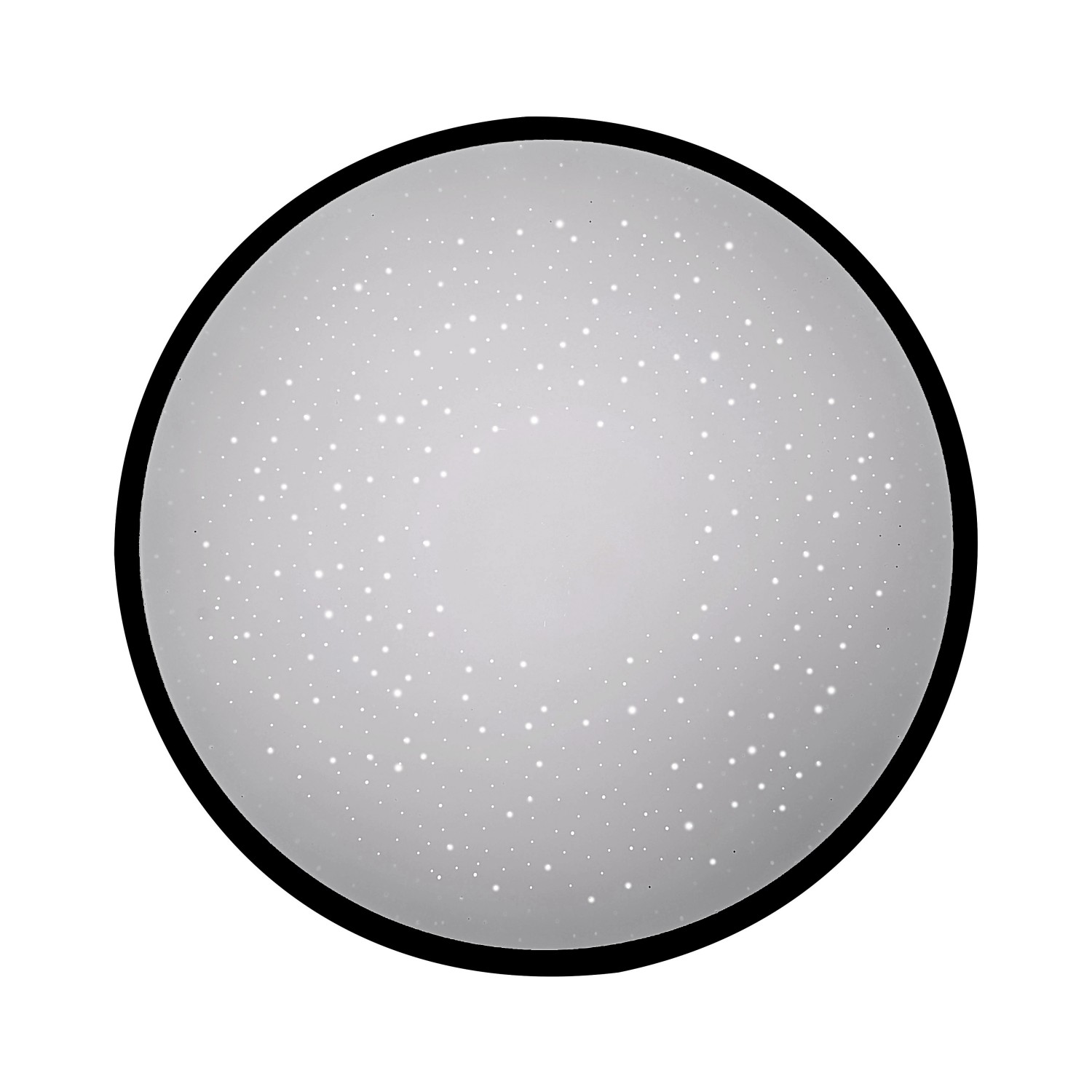 Stropné LED svietidlo Kyle boduje fascinujúcim vzhľadom hviezdnej oblohy. Funkcia hviezdnej oblohy v kryte lampy vytvára mäkké svetlo hviezdnej oblohy, ktoré vytvára romantickú a relaxačnú atmosféru. Užite si kúzelné chvíle a nezabudnuteľné večery pod vlastným hviezdnym nebom. Stropné svietidlo Kyle s priemerom 38 cm má vstavanú technológiu Switchmo, ktorá umožňuje nastaviť svetlo na tri intenzity svetla. Jas teplého bieleho svetla s teplotou chromatickosti 3000 Kelvin je možné ľahko regulovať od 100% do 50% a potom na 10% pomocou svetelného spínača. Táto funkcia umožňuje individuálne prispôsobenie vašim potrebám. Posledné zvolené nastavenie je uchované funkciou pamäte, kým nie je vykonaná zmena. Vďaka jednoduchému dizajnu s všestrannými funkciami je možné stropné svietidlo použiť v mnohých obývacích izbách a prepožičia miestnosti kúzlo hviezdnej oblohy.