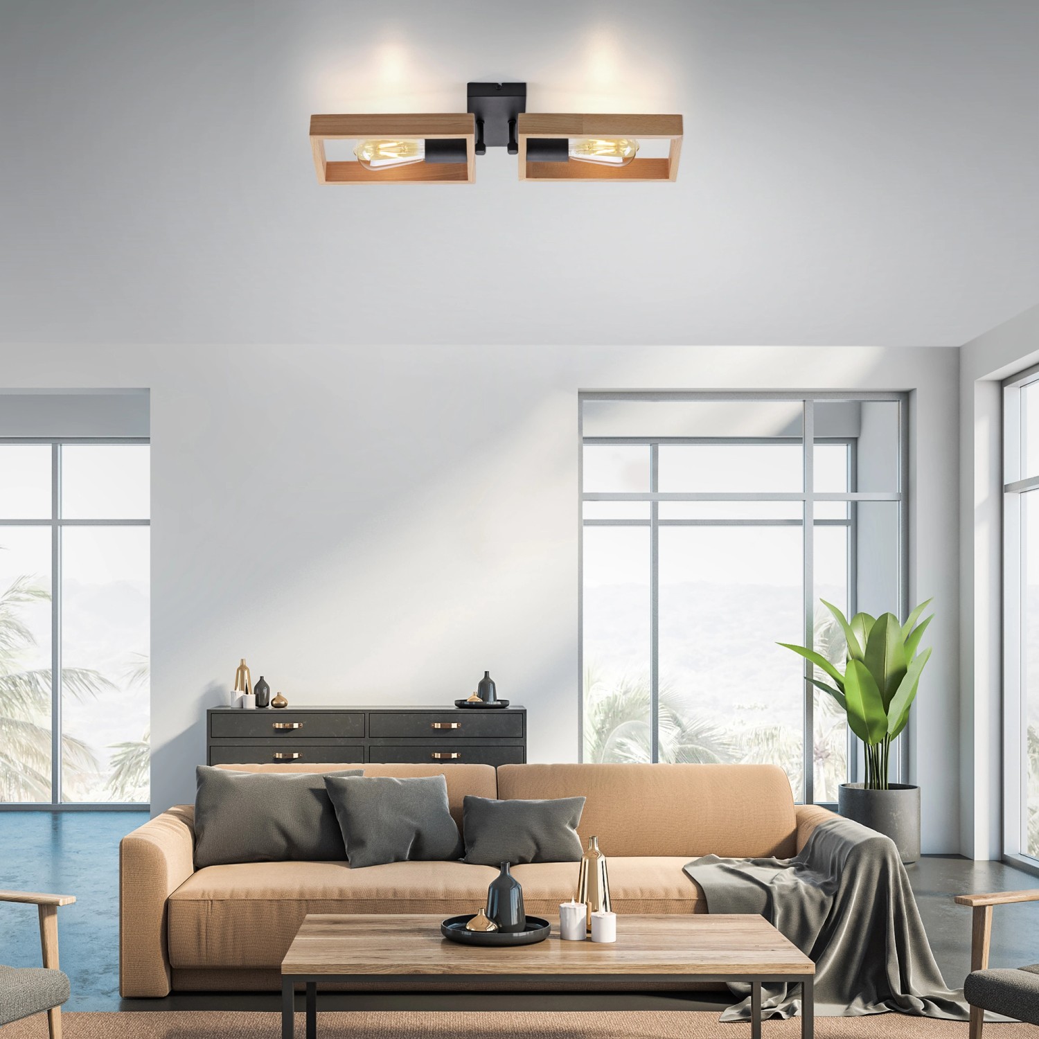 Dvojsvetelné stropné svietidlo Franky možno obzvlášť dobre integrovať do chodby alebo obytného priestoru. Dva svetelné zdroje si môžete vybrať podľa potreby. Žiarovkové svetelné zdroje sú obzvlášť efektívne, pretože sú dobre viditeľné a sú podstatnou súčasťou celkového vzhľadu svietidla. Dva obdĺžnikové rámy svietidla sú vyrobené z agátového dreva a sú usporiadané pozdĺžne za sebou. Vďaka kombinácii materiálov možno stropné svietidlo ľahko kombinovať s modernými štýlmi zariadenia a vytvoriť tak útulnú a pohodlnú atmosféru.