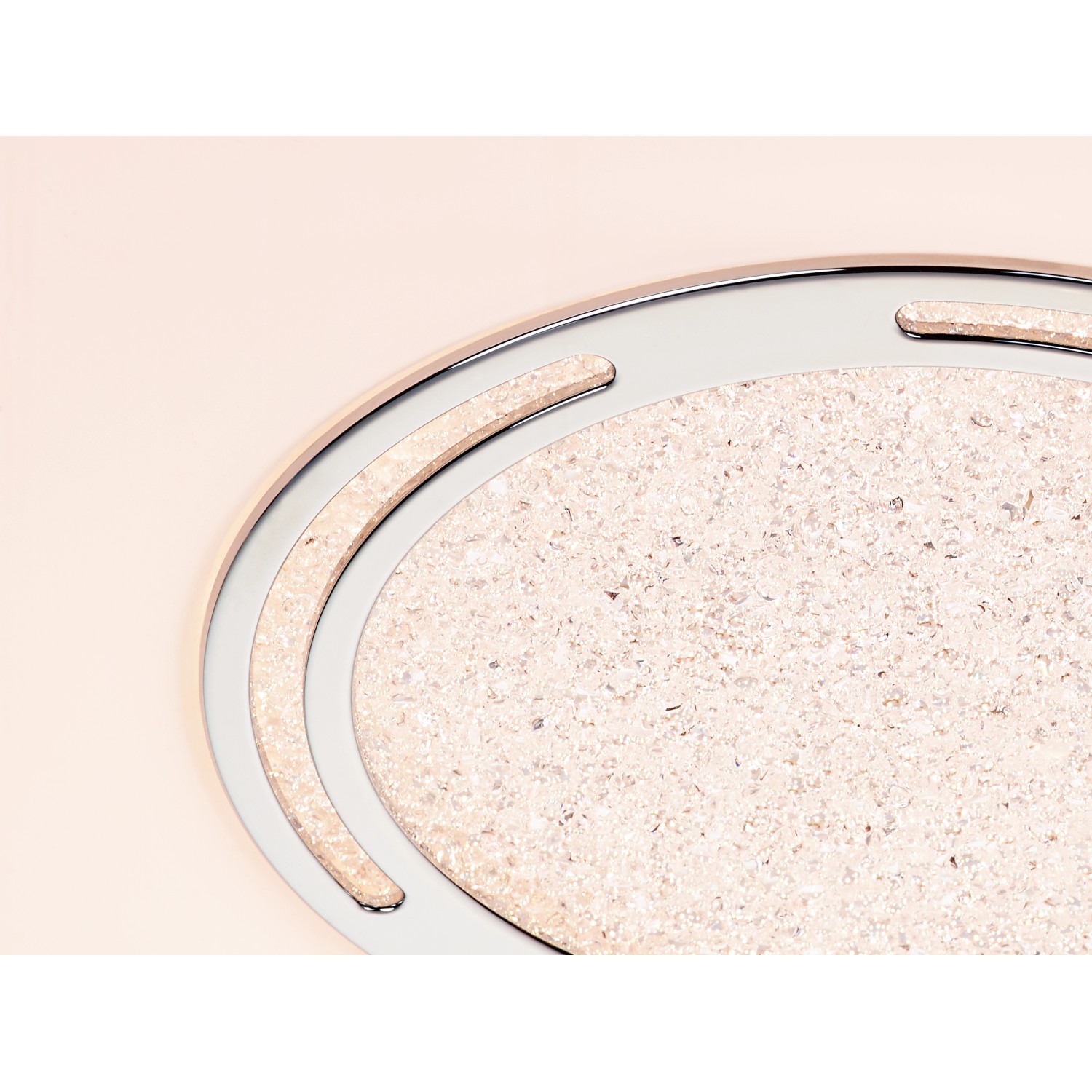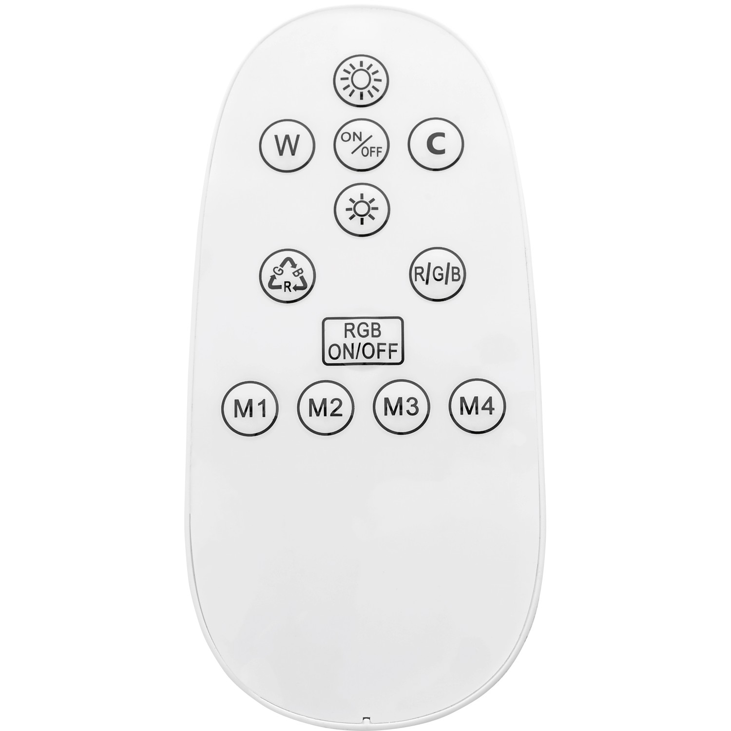 Stropné svietidlo z kovu je v prostej bielej farbe, s kruhom uprostred v striebornej farbe. Režim zmeny farby svetla ponúka najrôznejšie farby RGB. Okrem stmievania môže svetlo navyše meniť farbu v rozsahu teplá biela až studená biela (3000 K - 6000 K). V balení sa nachádza diaľkové ovládania na pohodlné ovládanie svetla.