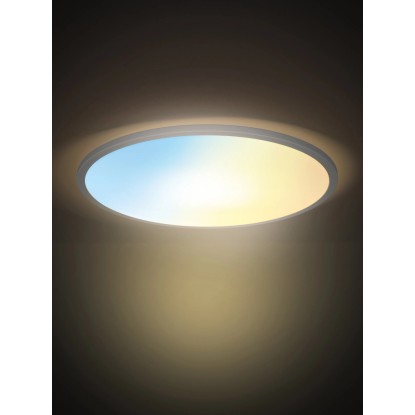 Stropné svietidlo je možné ovládať pomocou aplikácie, ovládača alebo hlasom. Spolupracuje s Alexou, Siri a Hey Google. Rozmer: 42 x 3 cm.