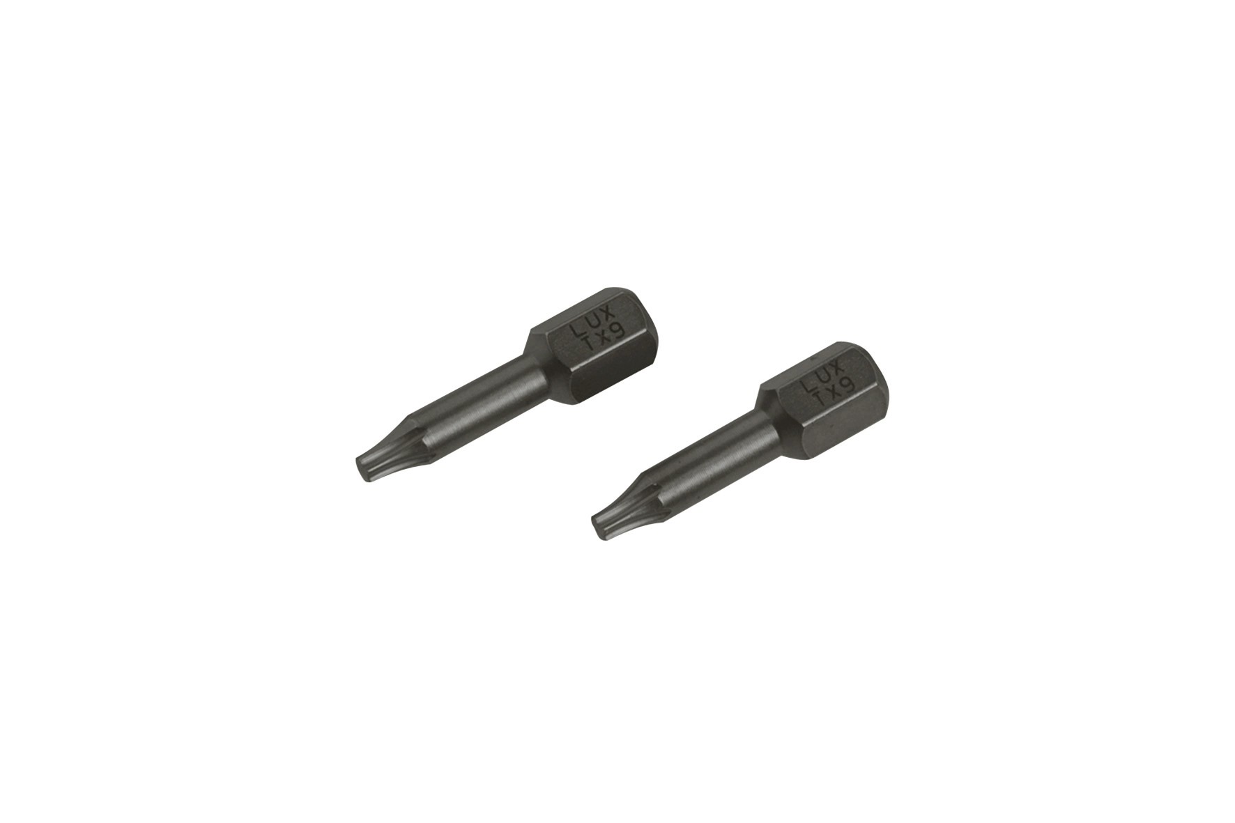 2dielna LUX-TOOLS súprava bitov Torsion sa skladá z dvoch bitov TX10 so špeciálnym vytvrdením pre dlhú životnosť. Bity sa hodia do všetkých držiakov bitov dostupných na trhu.