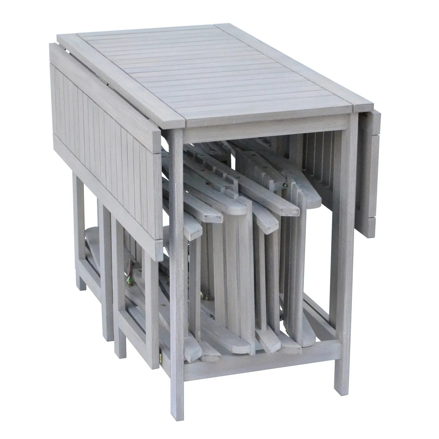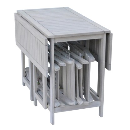 Záhradná zostava Mallorca je vhodná pre vonkajšie použitie. Moderná povrchová úprava vo farbe "white wash". Drevina Akácia. Obsah balenia 1 + 4.