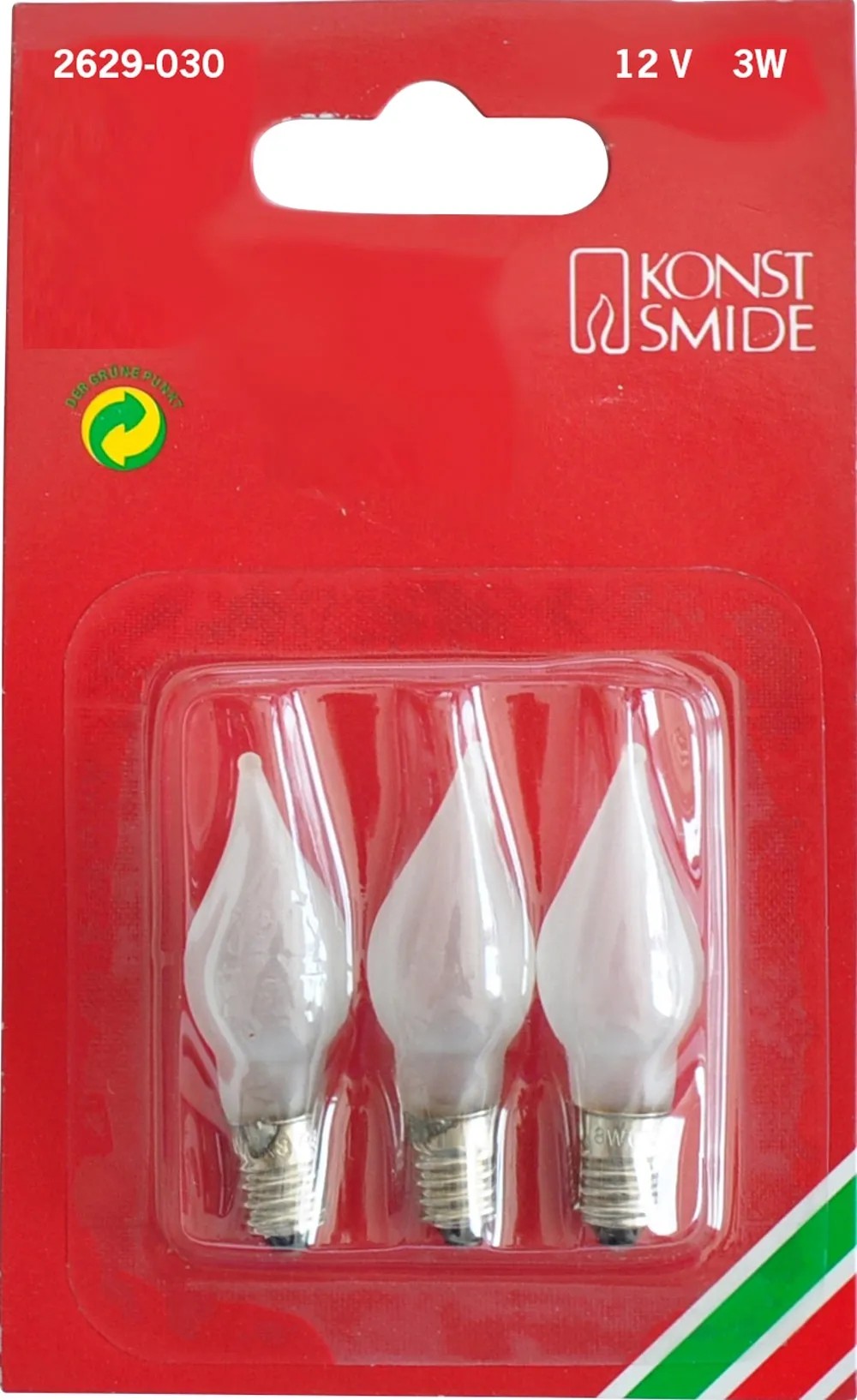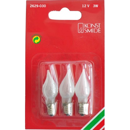 Náhradné sviečky, zatočená špička, 3 ks v balení, priehľadné, 12 V, 3 W, E10 závit.