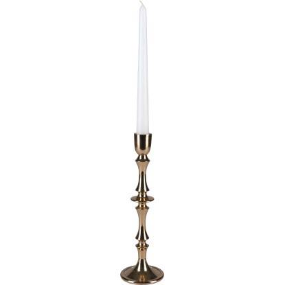 Svietnik z kolekcie Blush Bordeaux podporuje útulnú atmosféru v domácnosti a postará sa o príjemnú svetelnú atmosféru. Dá sa ideálne použiť v interiéri a môžete ho postaviť napríklad na komodu, parapet a stôl. Svietnik pritom zaujme antickým vzhľadom v zlatej farbe. Na jeho výrobu sa používa hliník. Má priemer 8,5 cm a výšku 28,5 cm.
