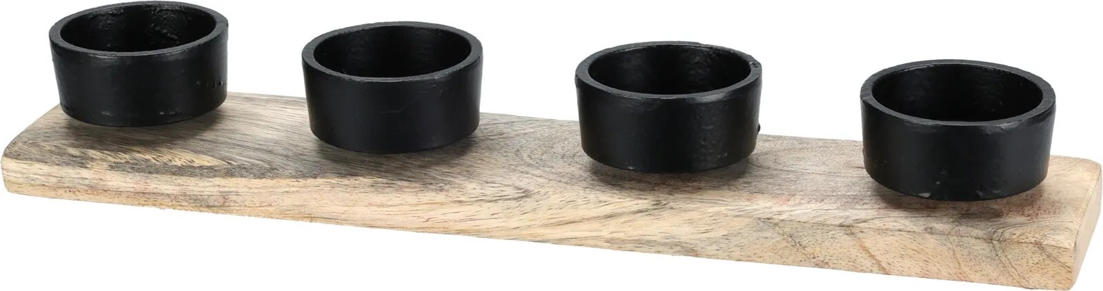 Koopman Svietnik na 4 čajové sviečky, drevo/kov, 4,5 x 6 x 30,5 cm