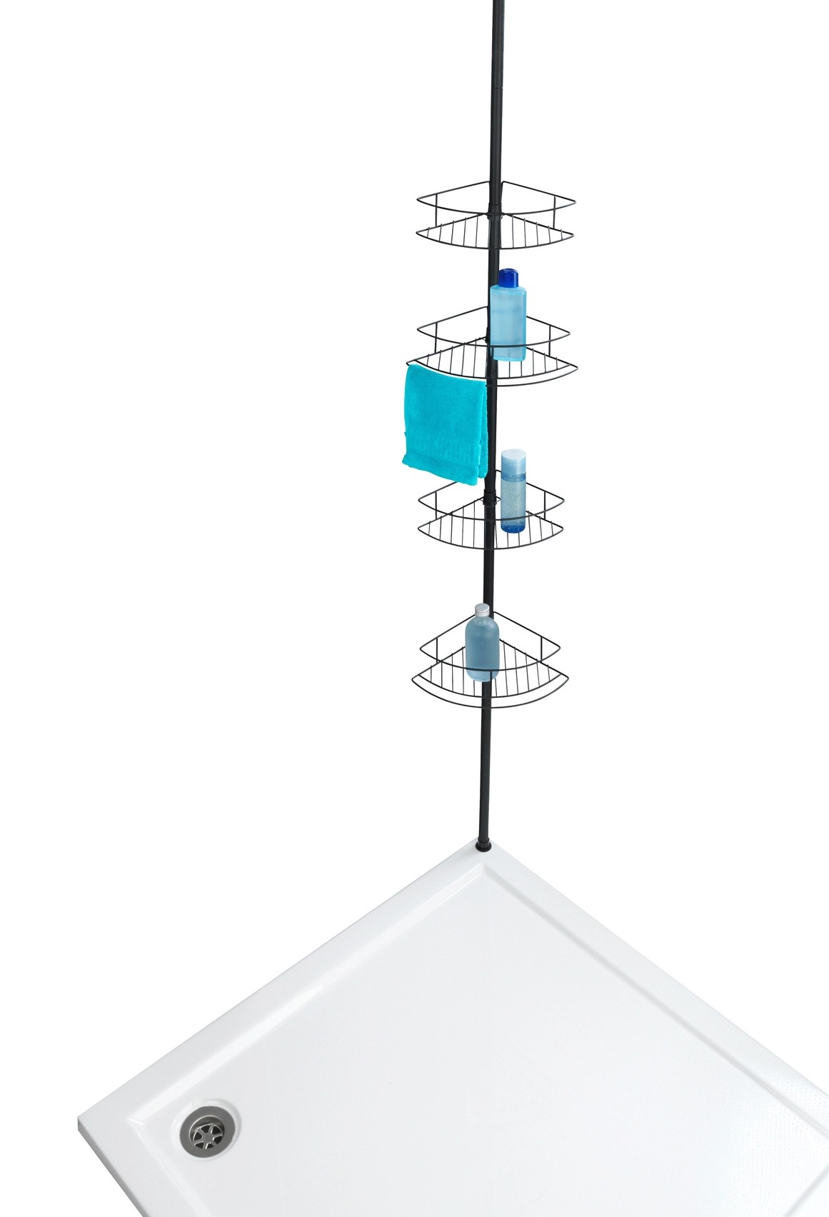Wenko Teleskopický rohový regál do sprchy Dolcedo, čierna, 31 x 23 x 275 cm