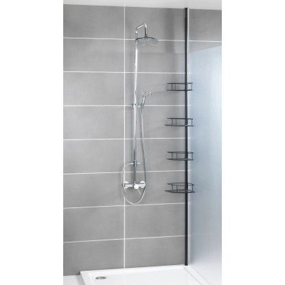 Teleskopický rohový regál Wenko Dolcedo z nerezovej ocele v atraktívnej matnej čiernej farbe je univerzálne použiteľný v sprchových kútoch av rohoch vaní. Praktický rohový regál ponúka štyri košíky na odkladanie šampónu, sprchového gélu, mydla a iných kúpeľňových potrieb. Dva košíky majú prídavný držiak na zavesenie žiniek.