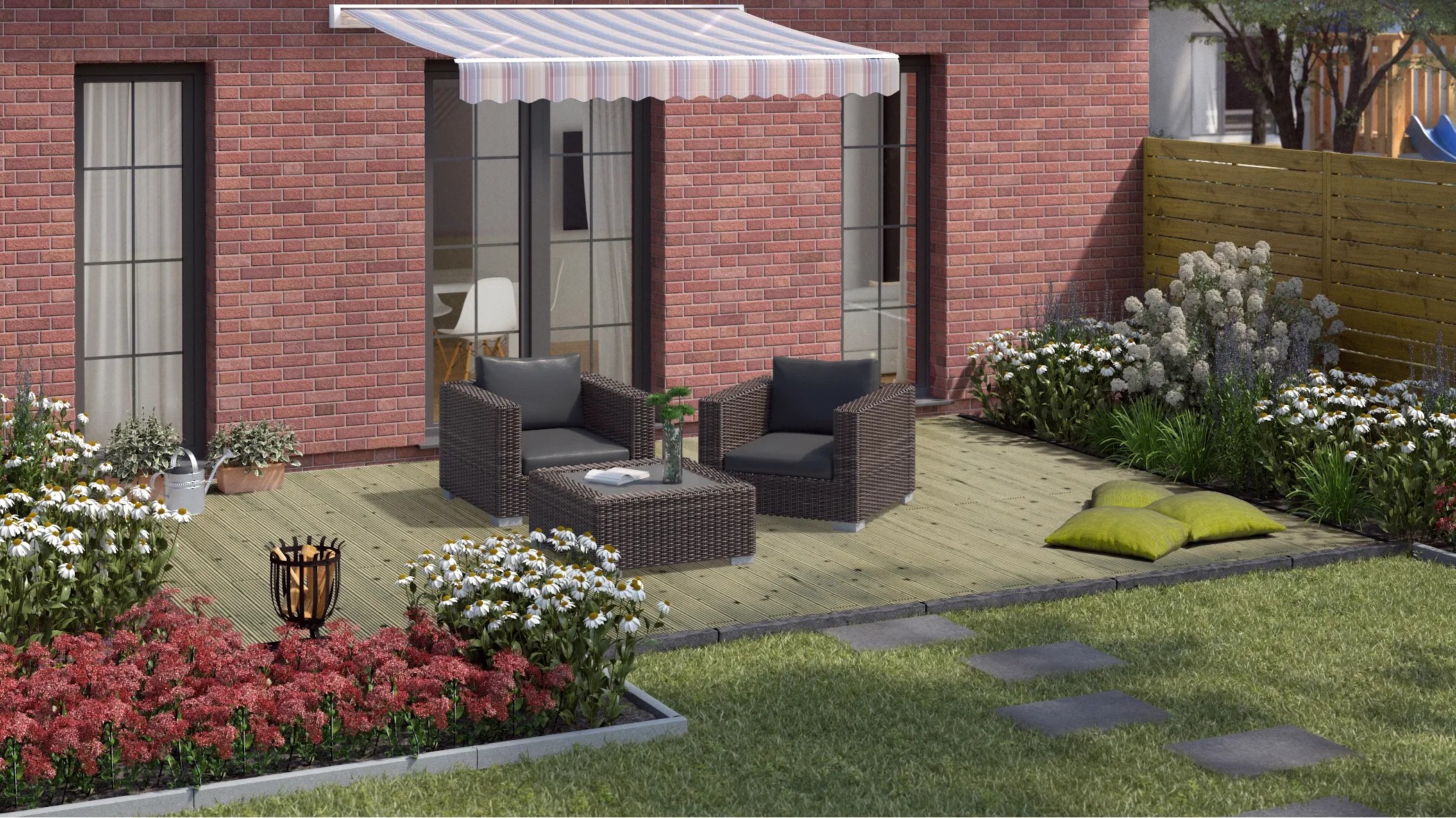 Táto terasová doska je ideálna pre použitie na terasách, balkónoch, záhradách, cestách, obrubách, plotoch a ďalších. Je ľahko spracovateľné.