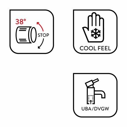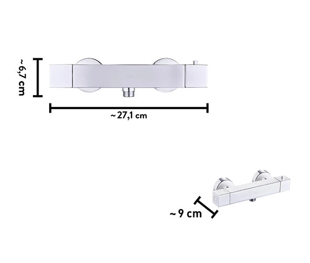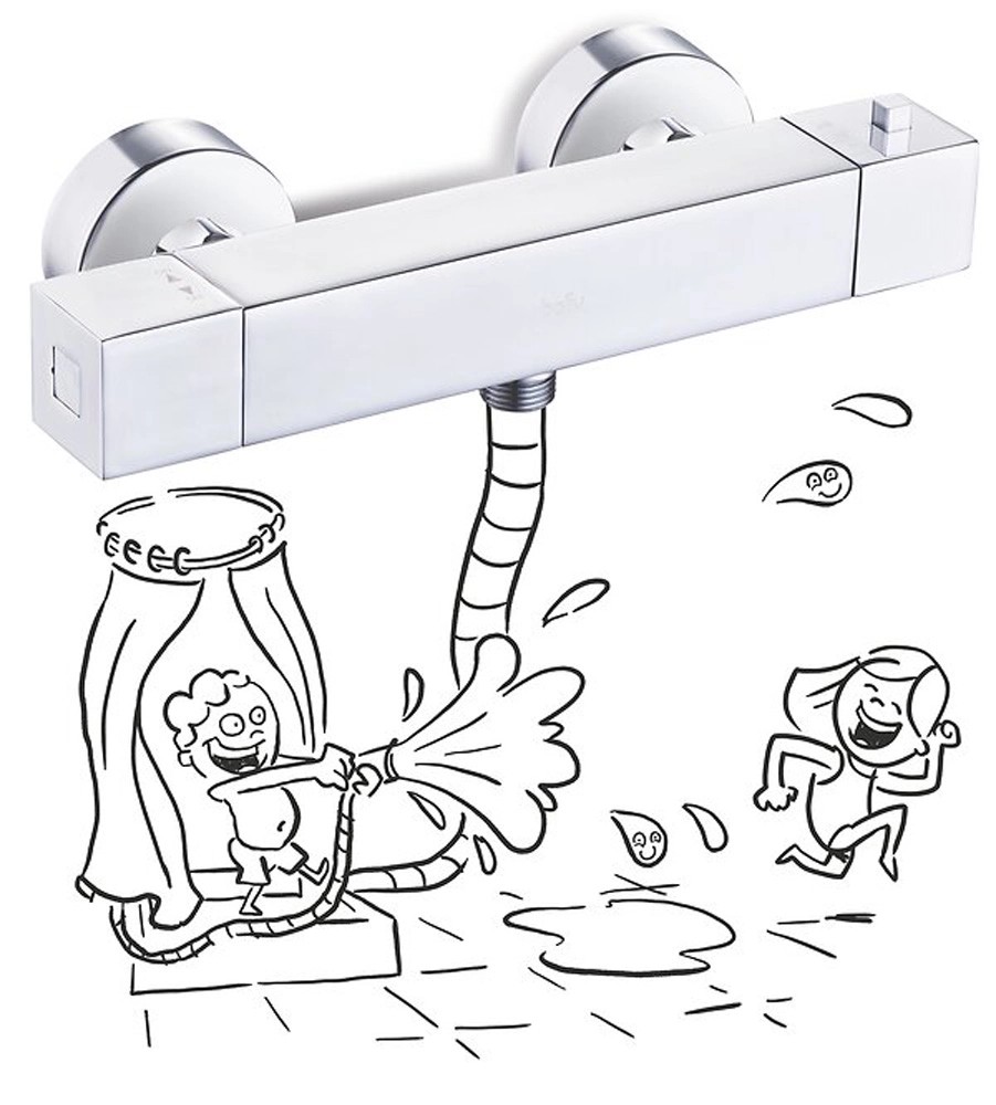 Termostatická sprchová batéria ponúka vďaka prednastaviteľnej teplote možnosť úspory vody a energie. Tento komfort je ešte doplnený ochranou proti obareniu pri +38 °C. Batéria nie je citlivá na kolísanie tlaku a je osadená osvedčenou značkovou kartušou a vybavená pripojovacím materiálom.