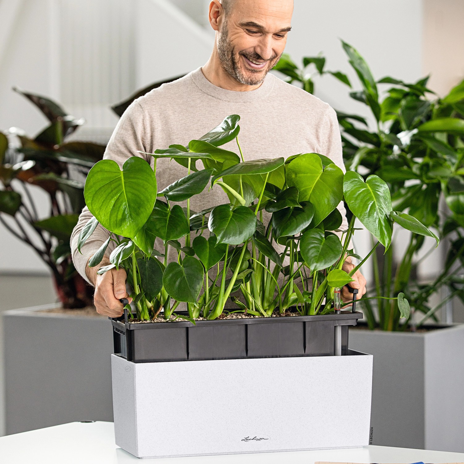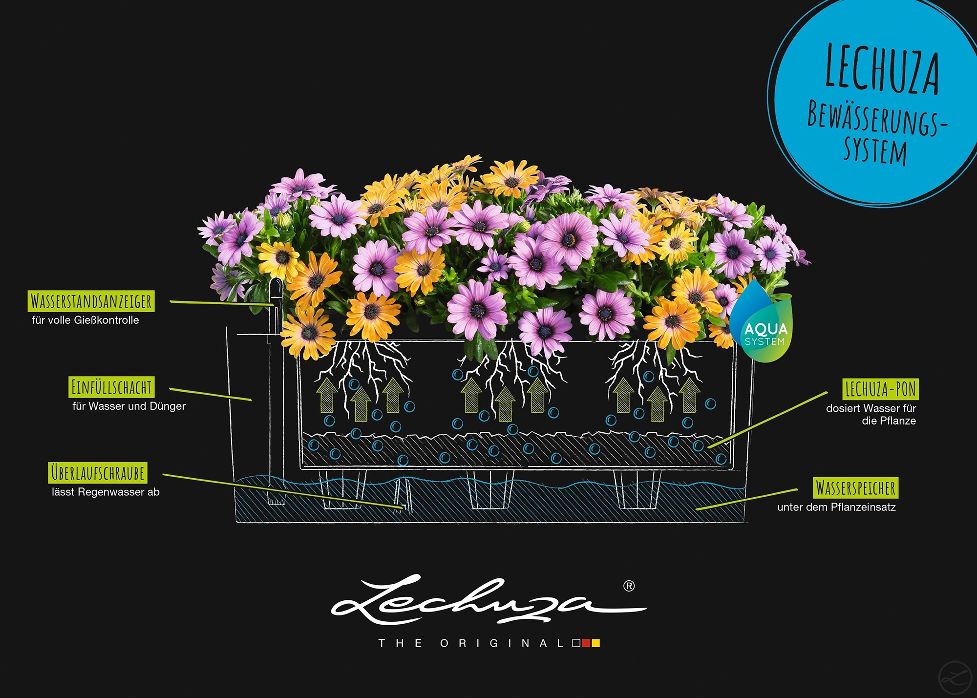 Je jedno či ste preč niekoľko dní alebo cez deň jednoducho nemáte čas na náročnú starostlivosť o rastliny. Kvetináče Lechuza zastanú prácu za vás. Vaše rastliny sú zabezpečené na 2-12 týždňov, podľa veľkosti zásobníka a to zásobou vody aj výživných látok, ktoré potrebujú na ideálny rast. S doplneným zásobníkom sa rastlina postará sama o seba bez vášho zásahu. Kedy je potrebné zásobník opäť doplniť vodou a prípadne tekutým hnojivom, vám spoľahlivo ukáže zabudovaná mierka stavu vody.