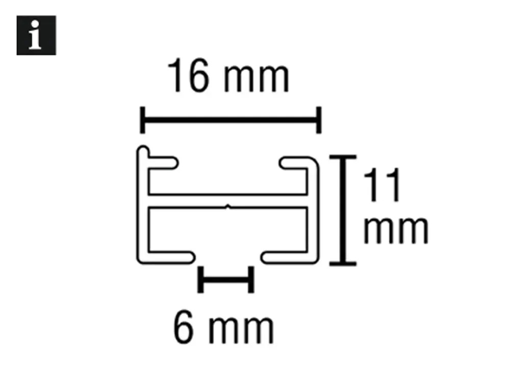 1-drážková záclonová koľajnička Lucy z hliníka nie je vďaka svojej výške cca 11 mm a šírke cca 16 mm takmer vidieť. Stropné držiaky z plastu zabraňujú poškriabaniu koľajničky. Do cca 6 mm širokého kanála drážky sa hodí celý rad obvyklých záclonových klzákov. S touto minimalistickou záclonovou koľajničkou optimálne vynikne vaša okenná dekorácia.