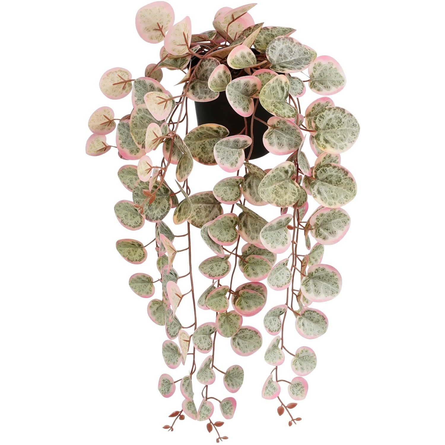 Umelé rastliny od Mica Decorations sú na nerozoznanie od skutočných rastlín, ale nevyžadujú žiadnu starostlivosť. Táto rastlina svietnika (Ceropegia) sa vyznačuje okrúhlymi listami v zelených farbách. Listy v rôznych veľkostiach ju robia ešte realistickejšími! Rastli v čiernom plastovom kvetináči je ideálna pre závesné kvetináče. Skvelý pútač na strop alebo pod policu! Kombinujte rastlinu s ďalšími umelými rastlinami a kvetmi a vneste do svojho domova viac zelene. Rozmery: 46 x 12 x 10 cm.