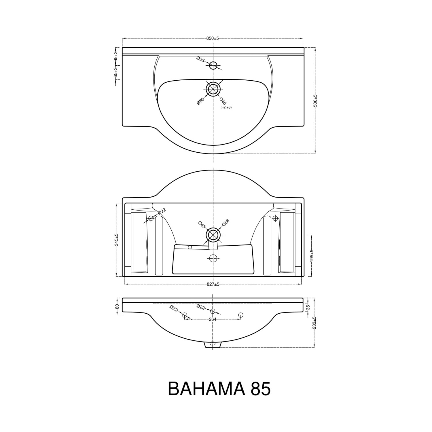 Umývadlo Bahama je vyrobené z vysoko kvalitnej odolnej sanitárnej keramiky v typickej bielej farbe a je vhodné pre všetky kúpeľne. Uprostred je opatrené otvorom pre kohútik, prepadom a zvýšenými okrajmi umývadla. Batérie, umývadlový výpust a sifón nie sú súčasťou balenia.