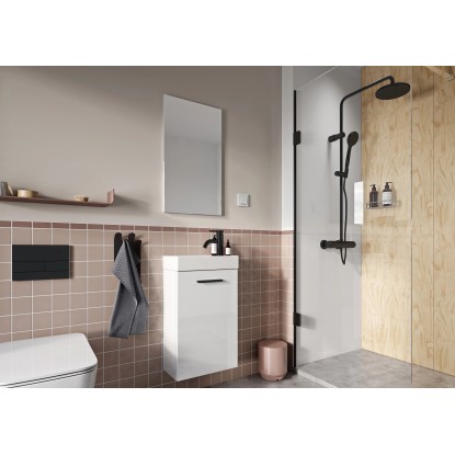 Súprava kúpeľňového nábytku Palma zaujme svojim pohodlným a moderným dizajnom a je možné ju integrovať do malých kúpeľní. 1dverová spodná skrinka s praktickou funkciou Soft-Close ponúka úložný priestor pre vaše kúpeľňové doplnky. Celkový vzhľad skrine završuje čierna rukoväť. Keramické umývadlo sa veľmi ľahko čistí.
