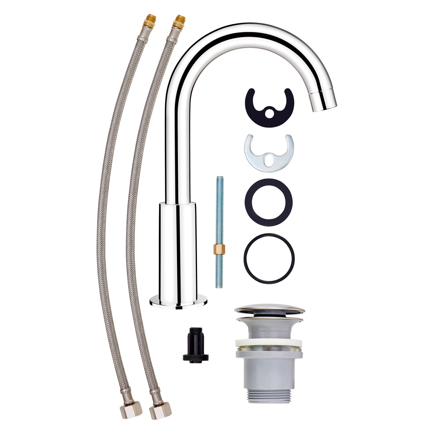Zvláštnosťou tejto batérie je štíhly, zahnutý tvar s bočne umiestnenou pákou. Je pekným dekoračným prvkom vo vašej oáze pokoja - osviežujúco iná! Odtoková armatúra má praktický pop-up ventil. Vďaka tomu môžete uzatváraciu zátku pohodlne otvárať a zatvárať stlačením prsta. Aj čistenie je tak oveľa jednoduchšie, lebo za batériou sa nenachádza žiaden rušivý zachytávač nečistôt.