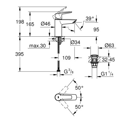 Grohe umývadlová batéria Start S-Size s odtokovou súpravou Push-open umožňuje pohodlnú jednootvorovú montáž a navyše má inštalačný systém Grohe QuickFix, pomocou ktorého je montáž jednoduchšia a rýchlejšia - vrátane montážneho náradia. Vodovodná batéria je vybavená variabilne nastaviteľným obmedzením množstva vody a obmedzovačom teploty.