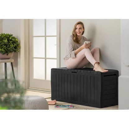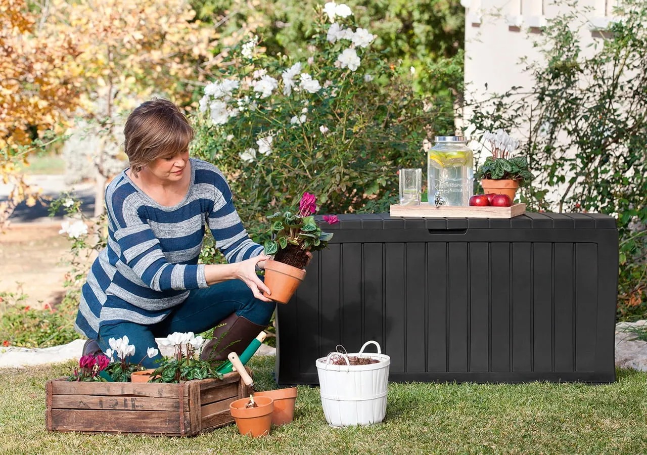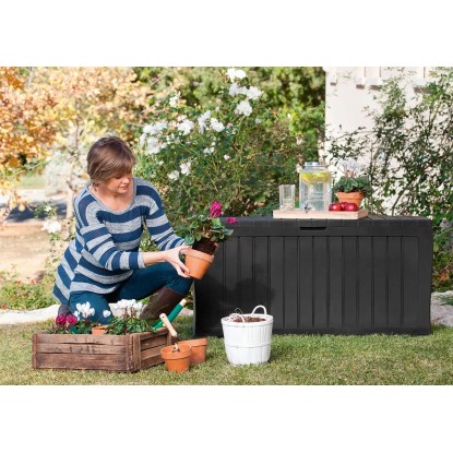Úložný box Keter MARVEL PLUS 270 L má užitočné funkcie. Môže slúžiť ako pohodlné sedenie pre 2 osoby a ako úložný box na záhradné doplnky - kanvy, kvetináče, vankúše alebo drobné záhradné náradie. Jednoduchý dizajn kvetináča bol vytvorený s ohľadom na všetky záhrady, klasické aj moderné. Výrobok je odolný voči poveternostným vplyvom a je možné ho ľahko čistiť.