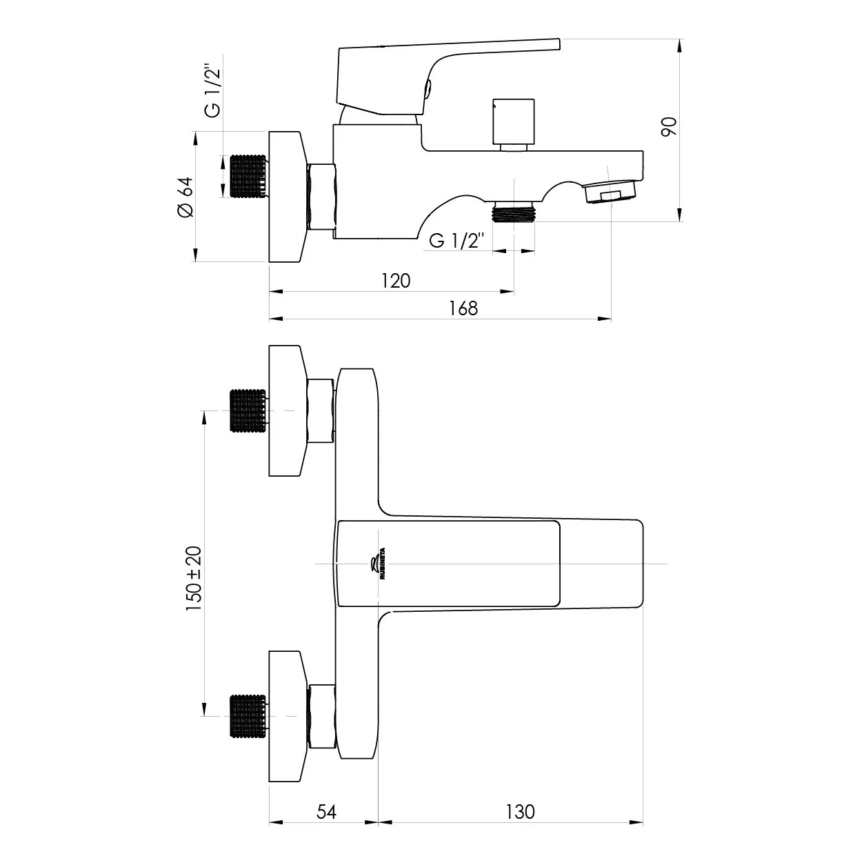 Rubineta Nástenná sprchová batéria Modena-10/K s prísl., chróm, rozstup 150 mm
