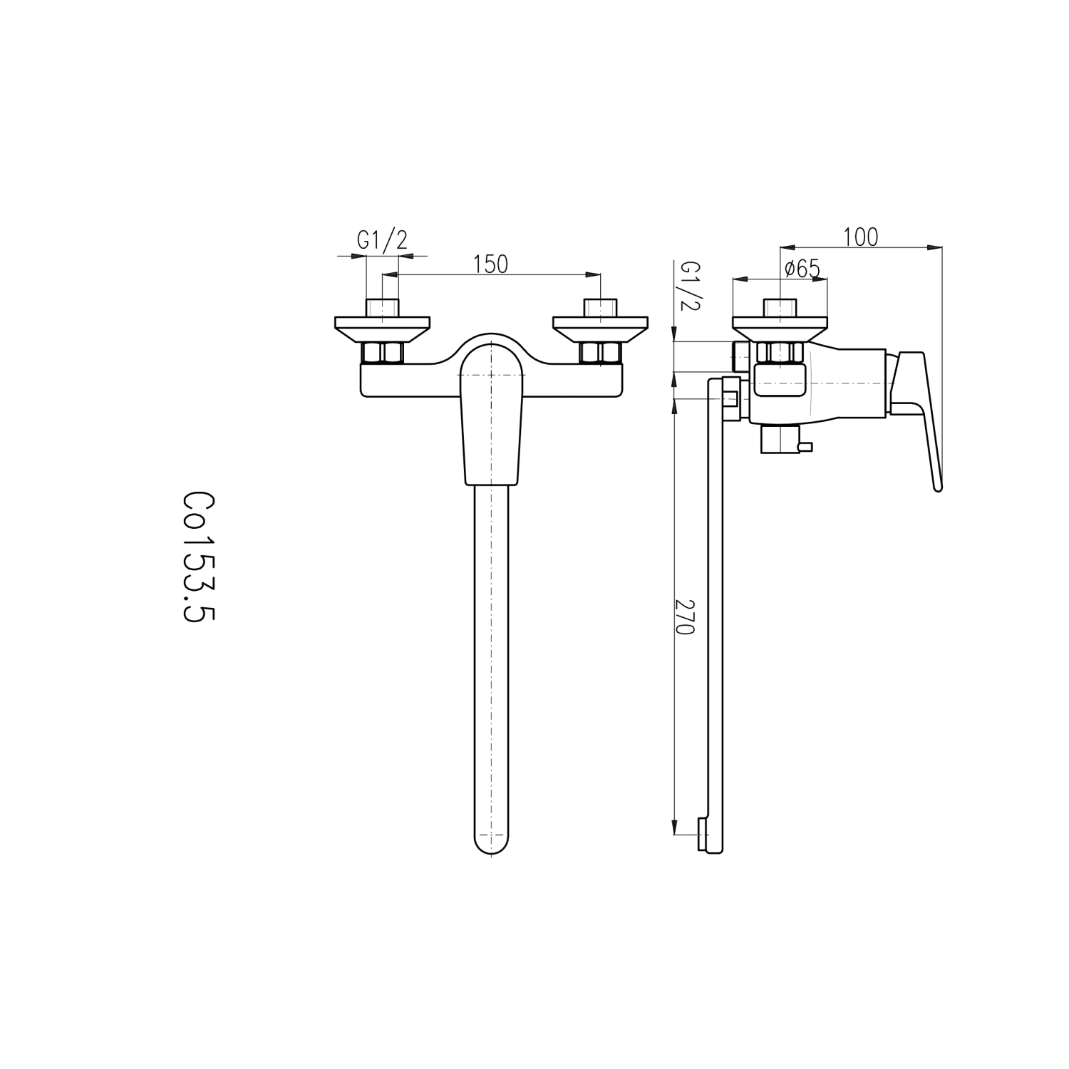 Vodovodná batéria pre vaňu a umývadlo nástenná s plochým, otočným ramienkom.