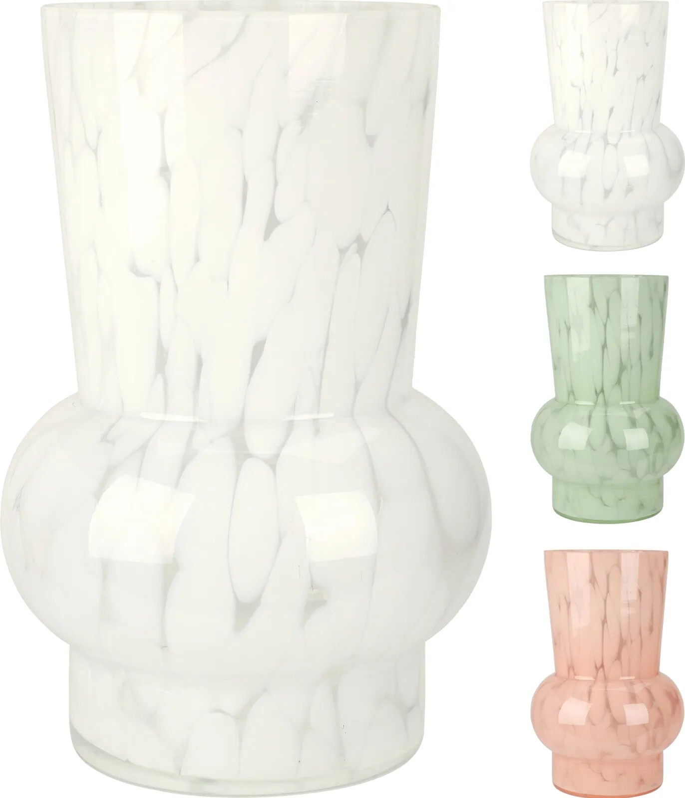 Sklenená váza s povrchom vo vzhľade mramoru. Váza je dostupná v 3 farbách. Rozmery: pr. 12 x 18 cm.