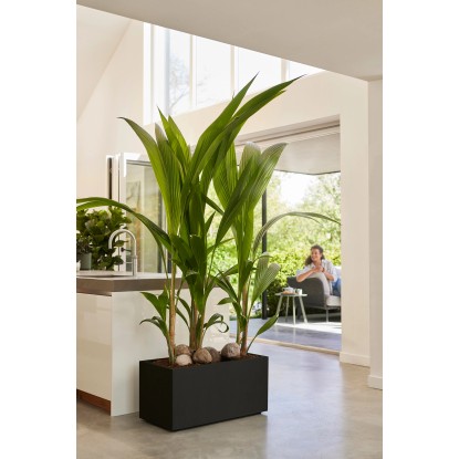 Hranaté tvarované kvetináče a truhlíky elho Vivo sú k dispozícii v matnom a štruktúrovanom prevedení v troch farbách - bielej, teplej sivej a modernej čiernej. Kvetináče a hrantíky Vivo sú opatrené kolieskami pre ľahké presúvanie. Sú odolné voči UV žiareniu a mrazuvzdorné. Ideálne do interiéru aj exteriéru.