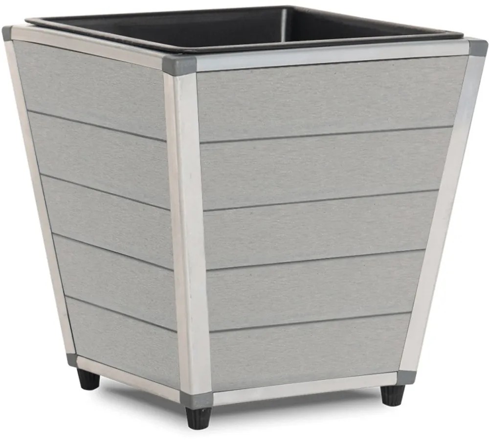 Kvetinový truhlík je svetlo sivý, kónický a má vyberateľnú plastovú vložku. Tento moderný kónický truhlík v spojení s vaším nápadom na vysadenie rastlinami upúta pozornosť vo vašom dome alebo na záhrade. Truhlík je vyrobený z kompozitného materiálu z dreva a plastu (WPC) a je vybavený vodotesnou vložkou z polypropylénu. Vďaka neutrálnej sivej farbe a nerezovému hliníkovému rámu je možné truhlík umiestniť nadčasovo, moderne a takmer všade. Skombinujte tento pekný kvetináč s inými veľkosťami do atraktívnej skupiny. Získate tak stabilnú nádobu na rastliny, ktorá bude aj skvelým vizuálnym prvkom po dlhú dobu.
