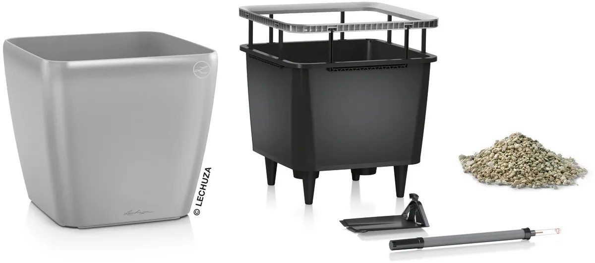 Kvetináč Lechuza Quadro Premium LS zaujme jednoduchým dizajnom a inteligentným systémom zavlažovania zeminy. Kvalitná nádoba je vybavená patentovaným systémom, ktorý umožňuje jednoduchú výmenu rastlín. Držiak vložky je nalakovaný vo farbe nádoby.