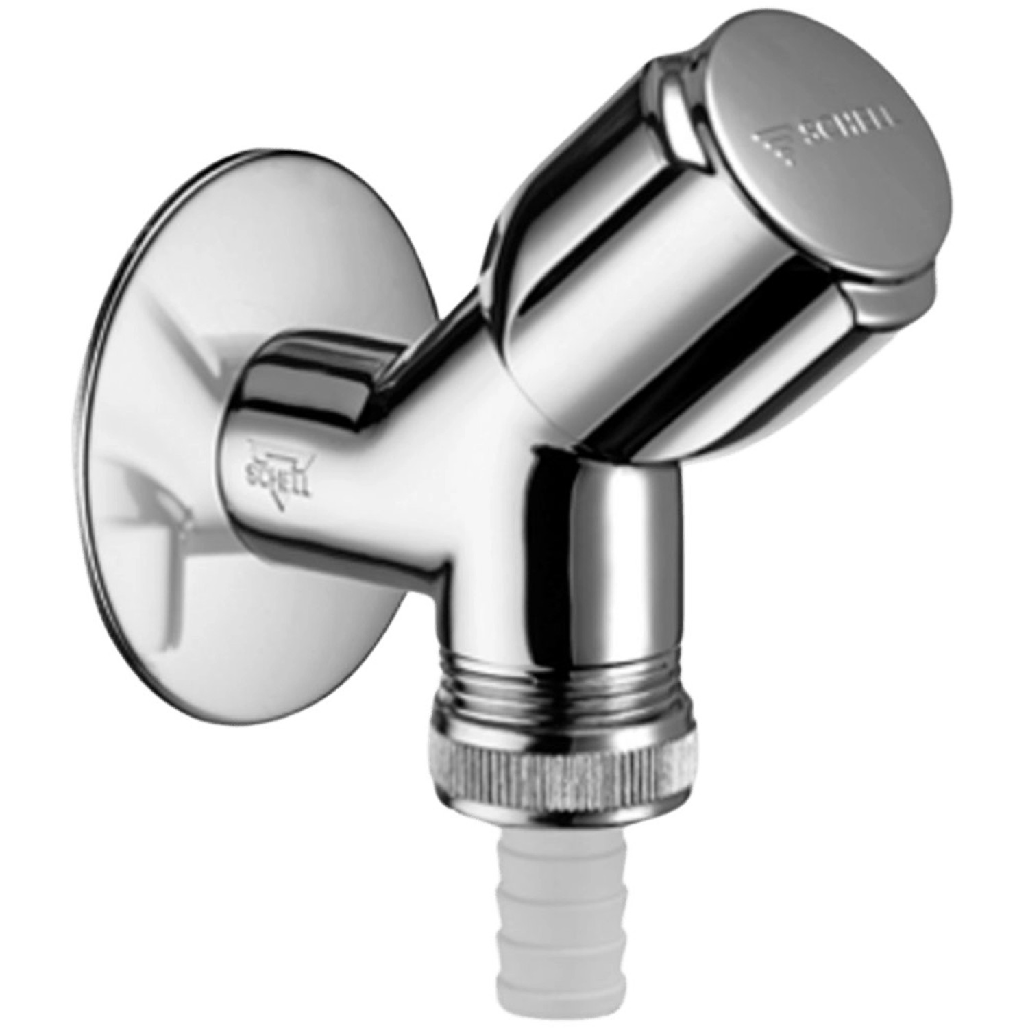 SCHELL Šikmý práčkový ventil 1/2x3/4 s ZK s rukoväťou Comfort. Poistka proti spätnému toku RV (EN 1717:EB). Mazacie hlavice. Hadicové šróbenie. Rozeta pr. 54 mm (hĺbka 3 mm)