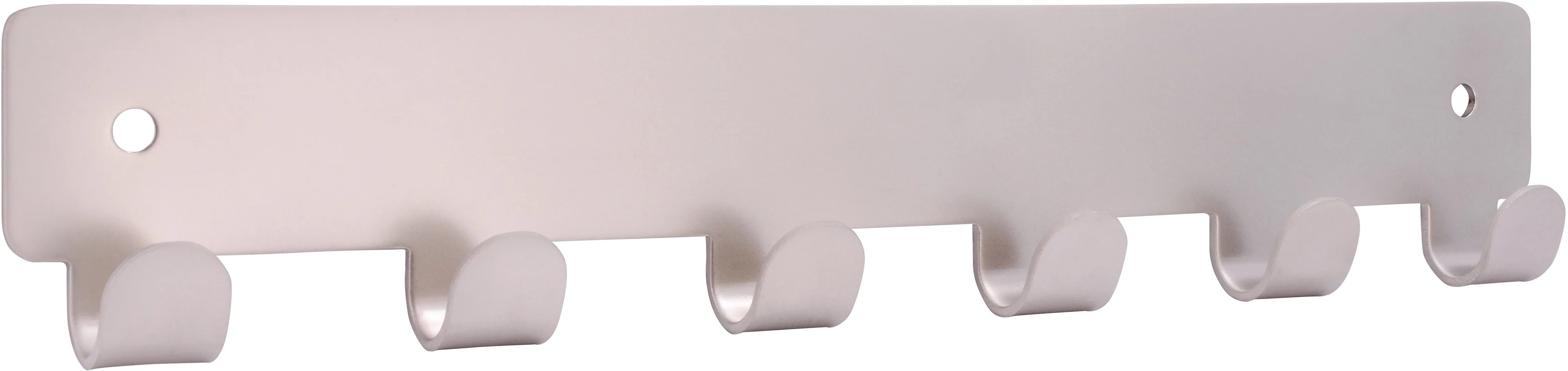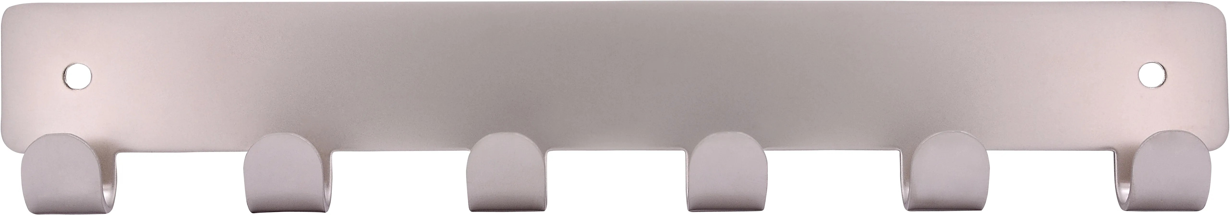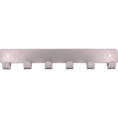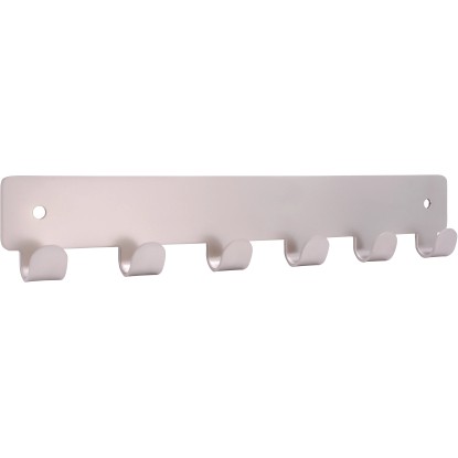 Háčiková lišta je vyrobená z kovu a má matný prírodný vzhľad. Vzdialenosť otvorov je 210 mm.