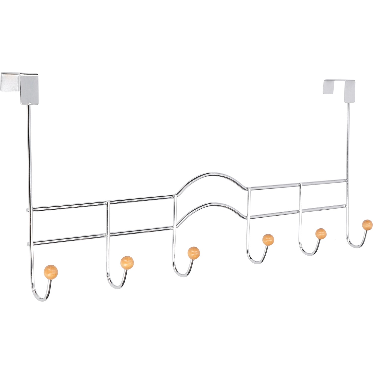 Siro súprava háčikov na dvere 1829-490 je vyrobená zo zinkového tlakového odliatku so 6 možnosťami zavesenia. Háčiky sú dekoratívne ozdobené drevenou guľôčkou z lakovaného javora, tu si nájdu miesto napríklad bundy, šály alebo aj opasky. Na hrúbku dverí 32 mm, dá sa jednoducho zavesiť do profilu dverí a dvere sa naďalej bez problémov zatvárajú.