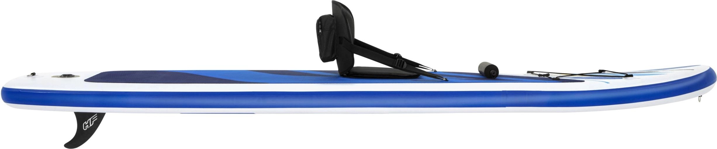 Bestway paddleboard Oceana Cabrio sa skvele hodí na výlety na mori, jazere alebo rieke a zaisťuje mnoho zábavy vo vode. Paddleboard je vybavený kajakovým sedátkom, takže ho môžete rýchlo a ľahko prerobiť na praktický kajak. Navyše sa dodáva vrátane pádla, ktoré umožňuje pohyb vo vode. Vďaka rukoväti na prenášanie môžete paddleboard flexibilne prepravovať. Pre bezpečné státie je nafukovací paddleboard vybavený protišmykovým povrchom. Je vyrobený z ľahkého a robustného materiálu. Rozmery: 305 x 84 x 12 cm (V x Š x H).