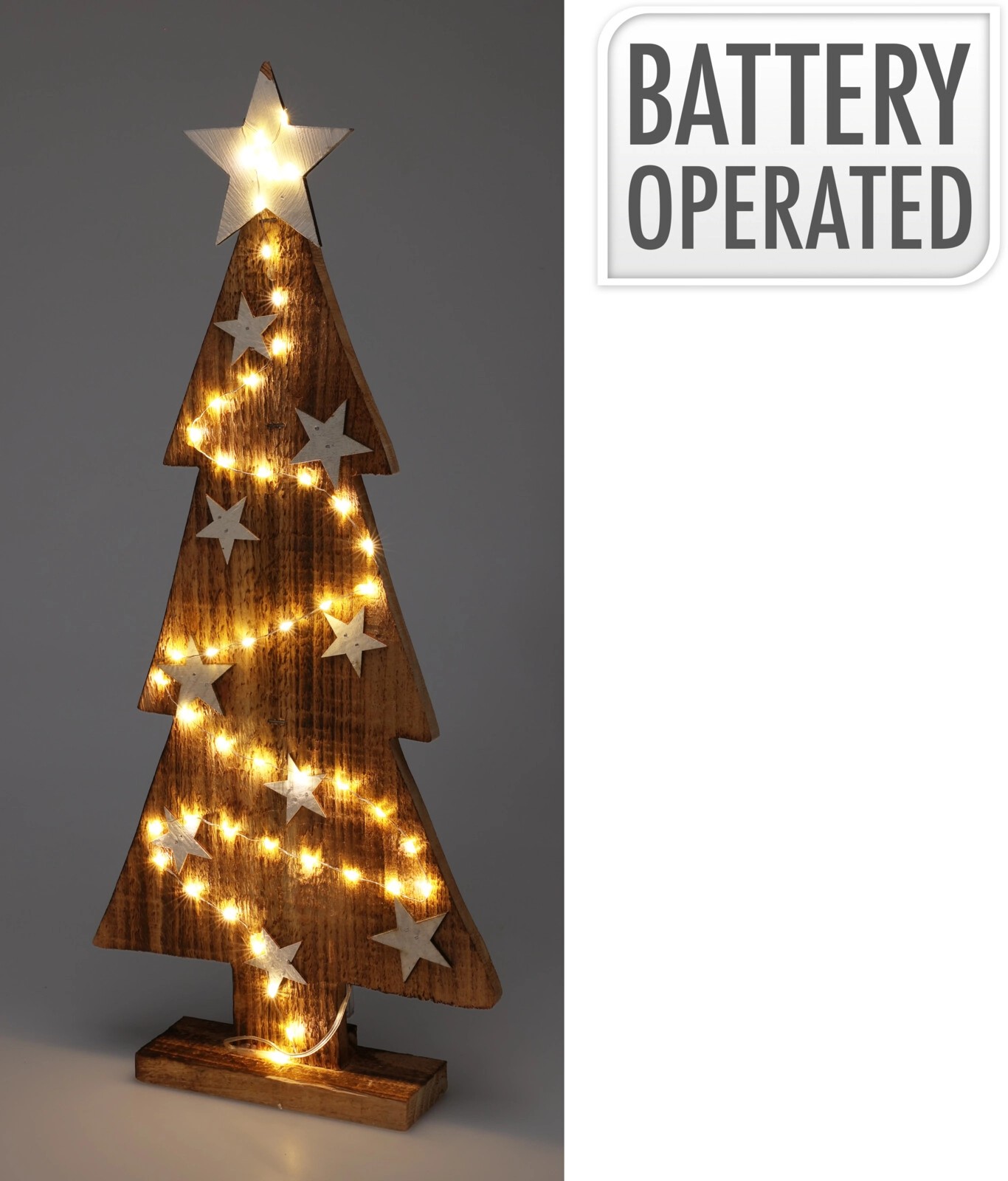 Drevený vianočný stromček s osvetlením 50 LED teplá biela, 25 x 6 x 54 cm