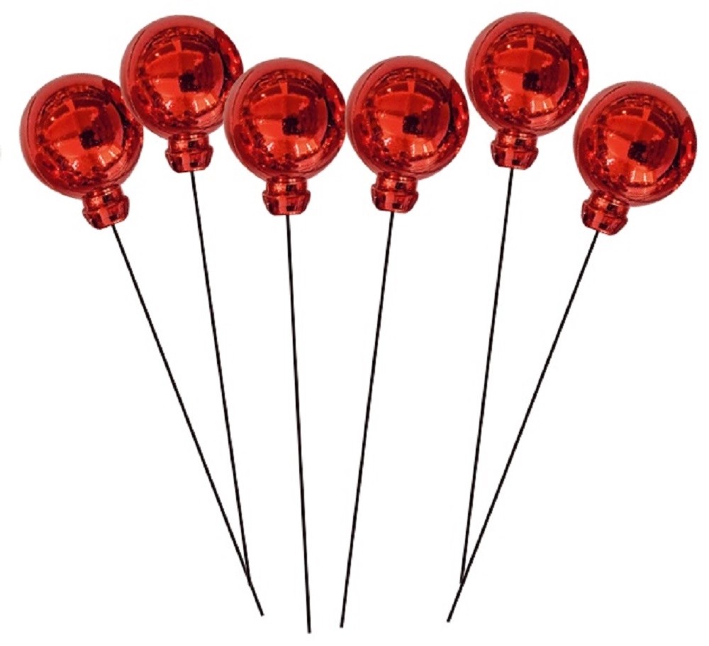 Plastové guličky na drôtiku, červené, 2 cm, 8 ks v krabičke