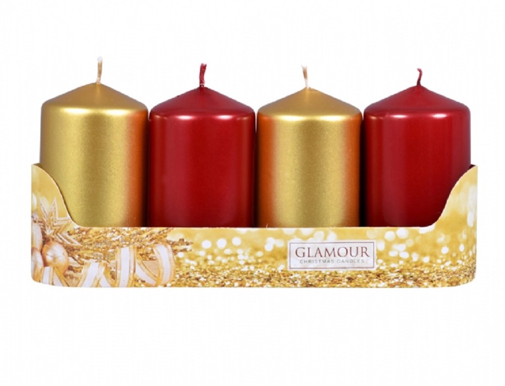 Sviečky adventné STUPŇOVITÉ MIX metal lesk zlatá/červená, pr. 5 x 9 cm, 2+2ks