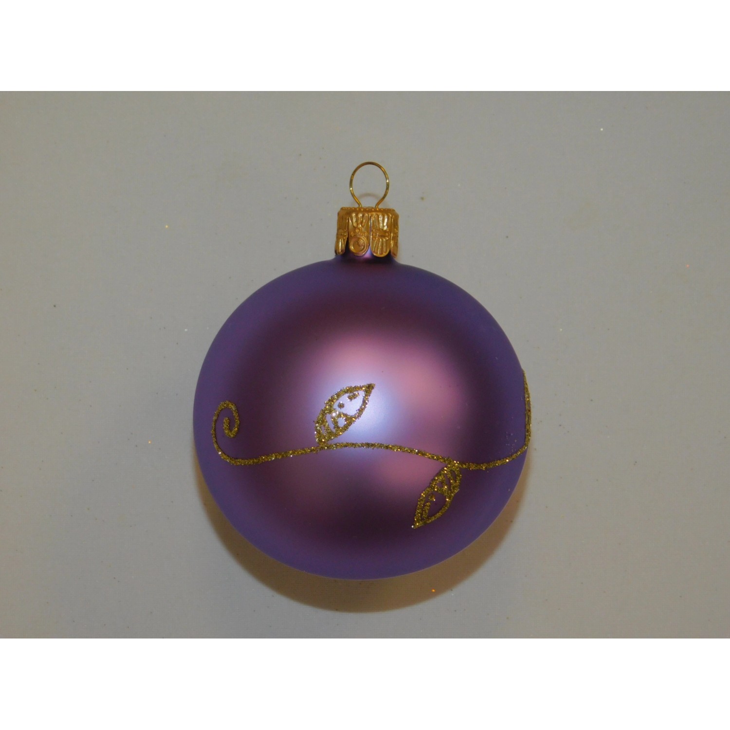 ONREX Vianočná ozdoba sklenená guľa fialová lístky pr. 7 cm