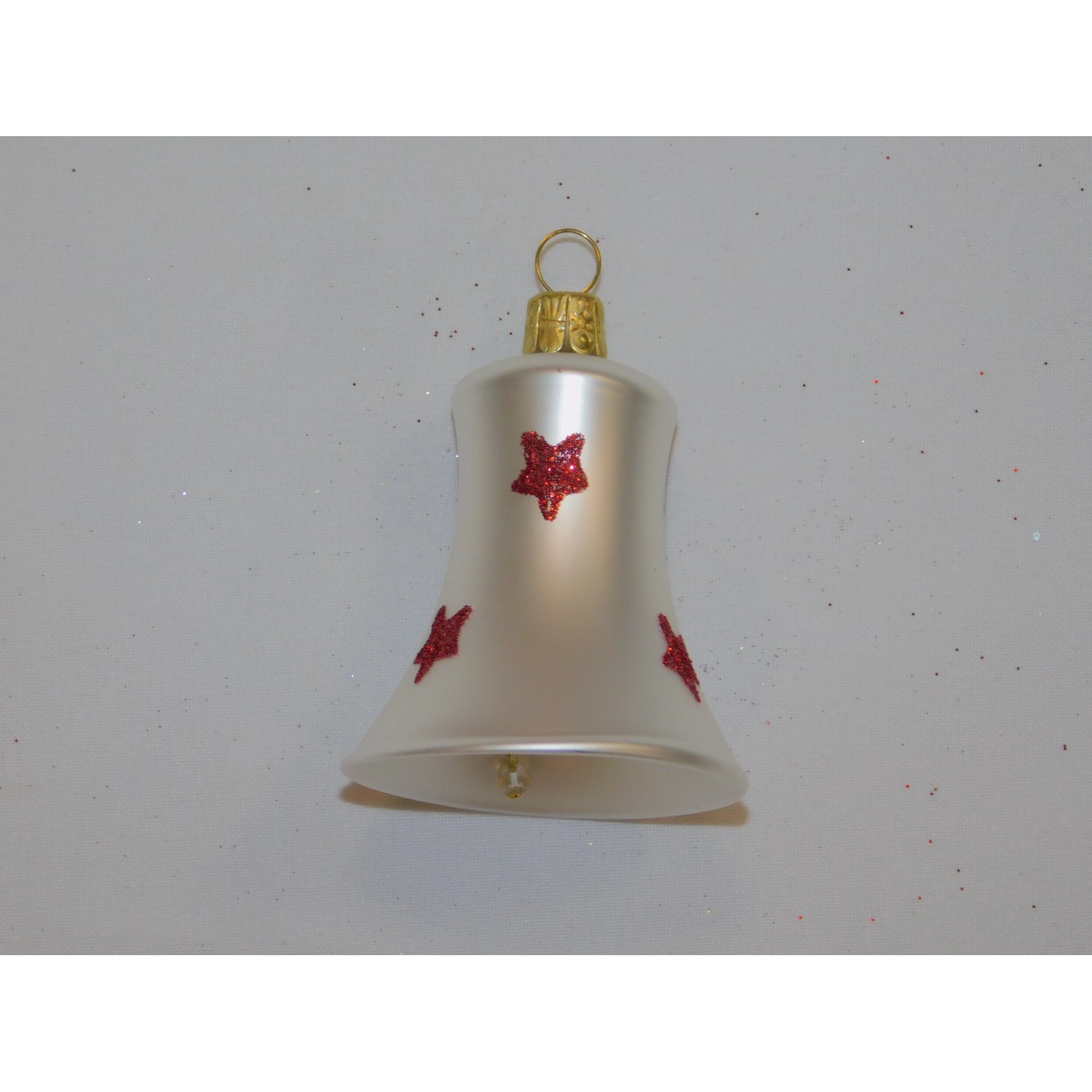 ONREX Vianočná ozdoba sklenená zvonček biely hviezdičky 5,5 cm