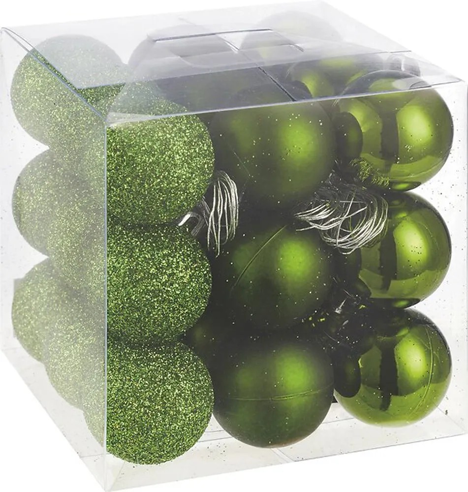 Súprava ozdôb na vianočný stromček umožňuje slávnostné ozdobenie vianočného stromčeka. Skladá sa z mixu gulí na zavesenie. Súčasťou dodávky je celkom 27 gulí s priemerom 3 cm. Súprava je v zelenej farbe. Gule sú z plastu. Povrch gulí na vianočný stromček je lesklý, trblietavý alebo matný.